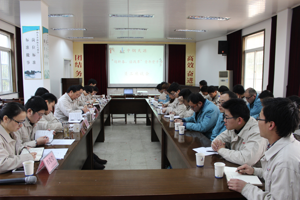 2月13日下午,中鋼天源“迎新春、話改革”青年骨干員工座談會(huì)在公司一樓會(huì)議室召開(kāi)。公司董事長(zhǎng)、黨委書(shū)記洪石笙,副總經(jīng)理、黨委副書(shū)記、紀(jì)委書(shū)記亞海斌,董事會(huì)秘書(shū)章超應(yīng)邀出席會(huì)議。各職能部門(mén)負(fù)責(zé)人、團(tuán)委委員、團(tuán)支部書(shū)記以及來(lái)自各單位的青年骨干員工代表共40余人參加了座談會(huì)。